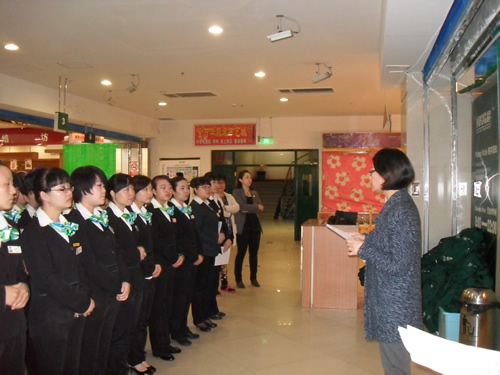 2013年4月9日是一個(gè)普通的工作日,但卻是國芳集團(tuán)收銀部崗位技能管理水平提升和發(fā)展歷程上非常重要的一天,因?yàn)榻裉靽技瘓F(tuán)零售板塊蘭州地區(qū)收銀員職業(yè)技能評(píng)定工作正式拉開帷幕。早上8點(diǎn)整,在蘭州國芳綜超廣場店正式召開了本次活動(dòng)的動(dòng)員會(huì),動(dòng)員會(huì)由收銀部經(jīng)理韓曉麗女士主持,蒞臨現(xiàn)場的公司領(lǐng)導(dǎo)有集團(tuán)總裁助理、財(cái)務(wù)總監(jiān)余麗華女士,集團(tuán)總裁助理、人力資源總監(jiān)孟麗女士,集團(tuán)培訓(xùn)經(jīng)理、蘭州百貨人力資源經(jīng)理孫曉輝女士,綜超人力資源經(jīng)理馬琳先生。