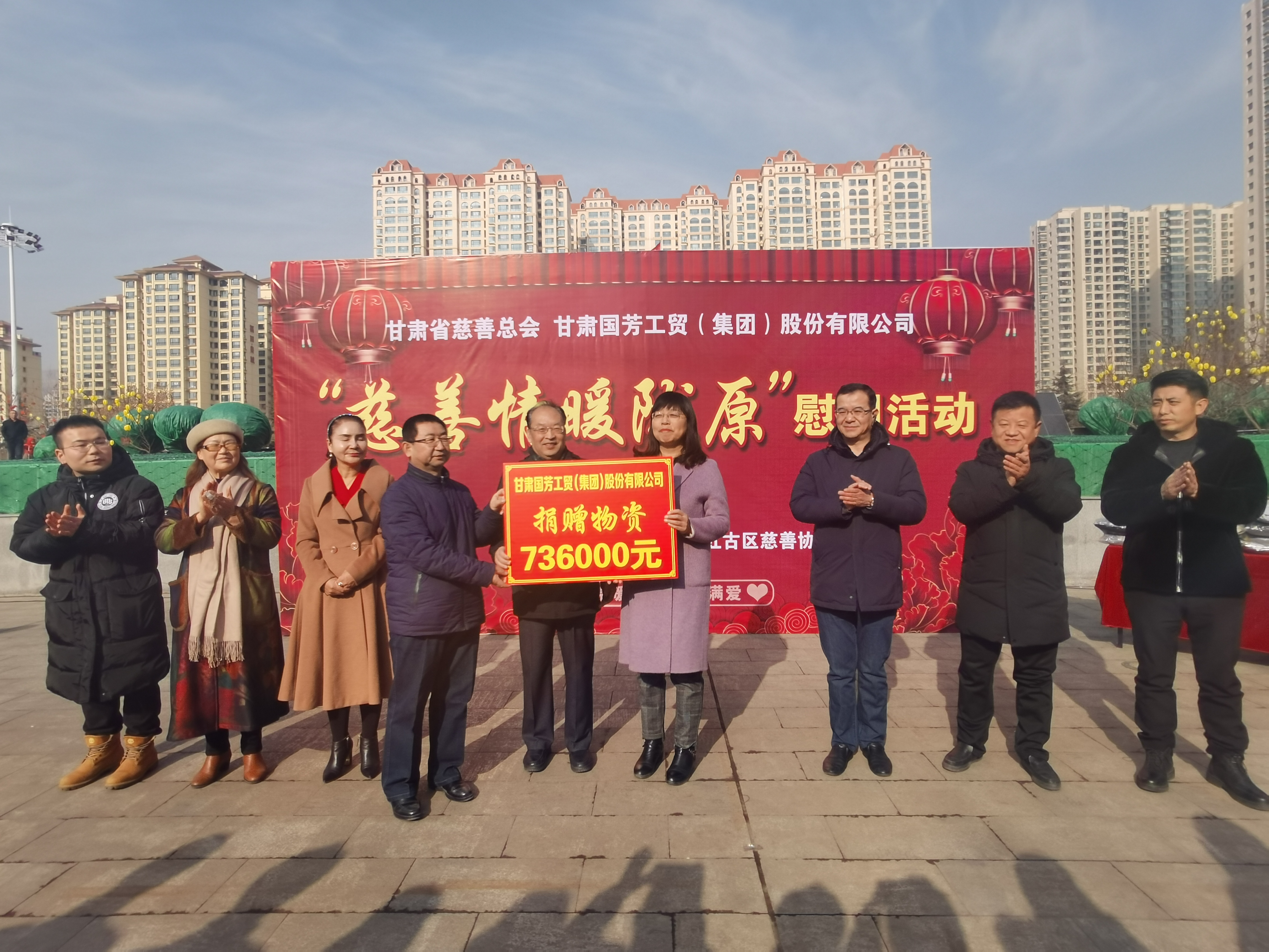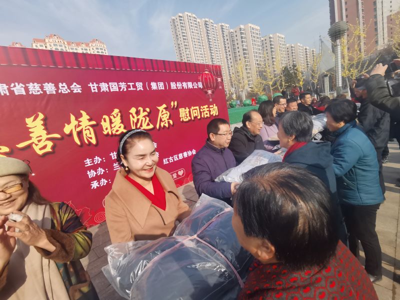 2020年1月14日,甘肅省慈善總會、蘭州市慈善會以及紅古區(qū)民政局攜甘肅國芳工貿(mào)(集團)股份有限公司在蘭州市紅古區(qū)海石廣場共同舉行“慈善情暖隴原”暨物資捐贈活動,將2000件棉衣,1200余件秋褲,2000余件保溫杯以及1000余件棉拖合計價值73.6萬元的過冬物資帶給蘭州市紅古區(qū)的困難群眾。