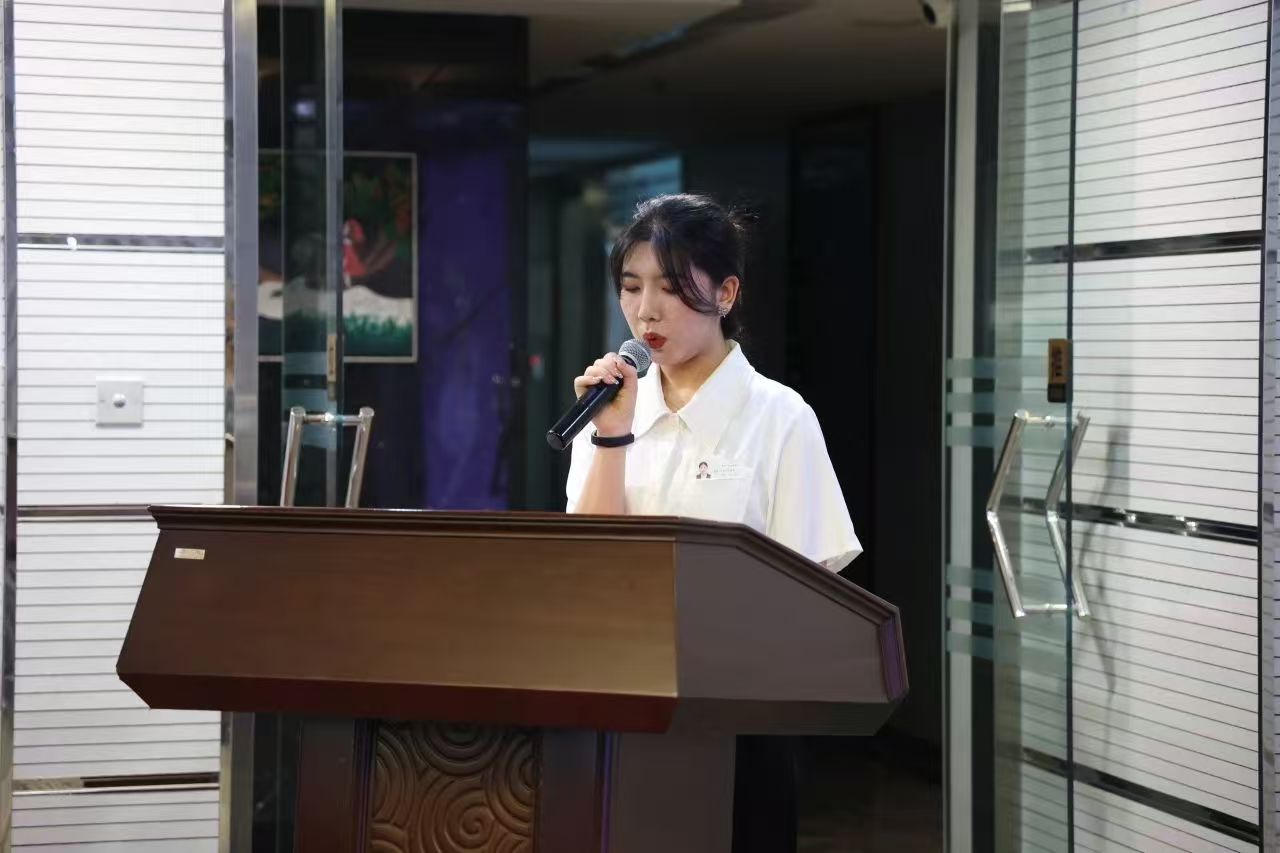 2024屆管培生代表進(jìn)行新生發(fā)言,表明會努力轉(zhuǎn)變?yōu)橐幻细竦摹皣既恕保瑹o論未來的道路如何,都將與公司同呼吸、共命運(yùn),以積極的態(tài)度和不懈的努力,為公司的發(fā)展添磚加瓦。